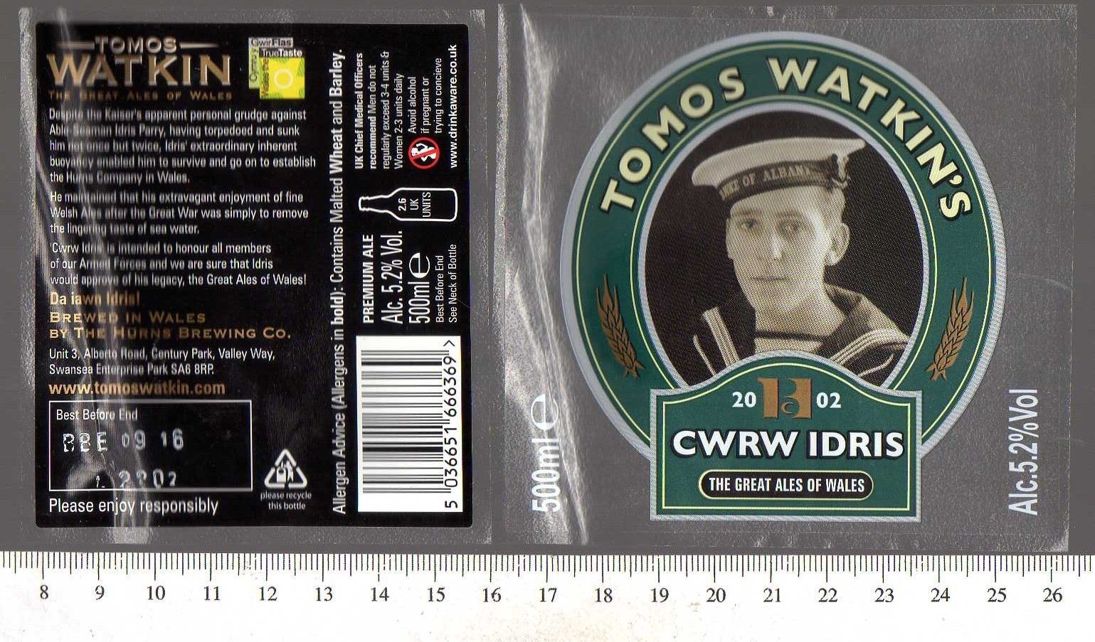 Title (ebay affiliate link): UK Beer Label - Tomos Watkin's Brewery - Wales - Cwrw Idris