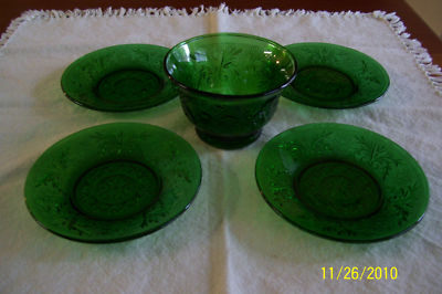 Title (ebay affiliate link): Vintage Forest Green Depression Saucers (4) with 1 Cup