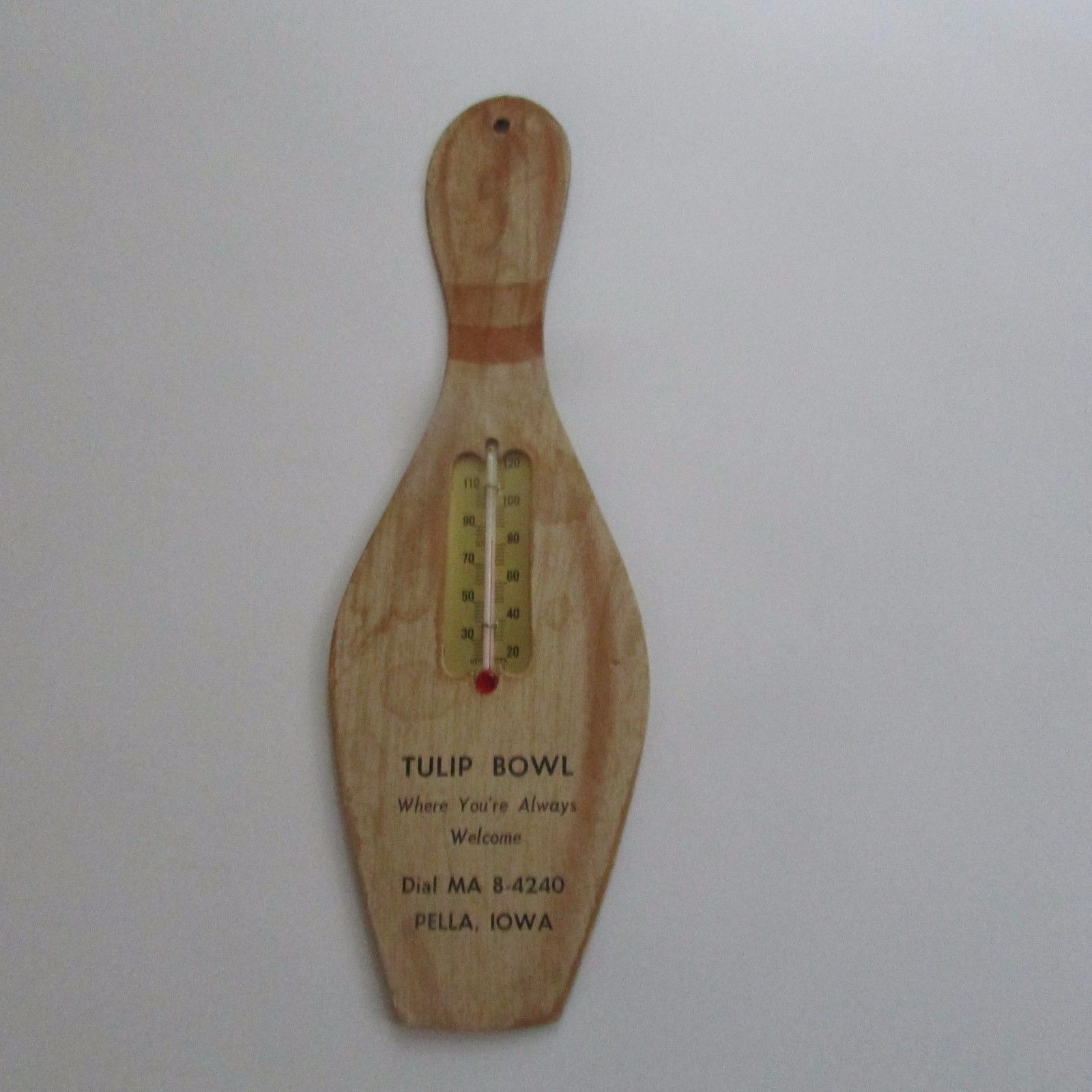 Title (ebay affiliate link): OLD PELLA IOWA Thermometer Advertising Tulip Bowl bowling alley pin shaped
