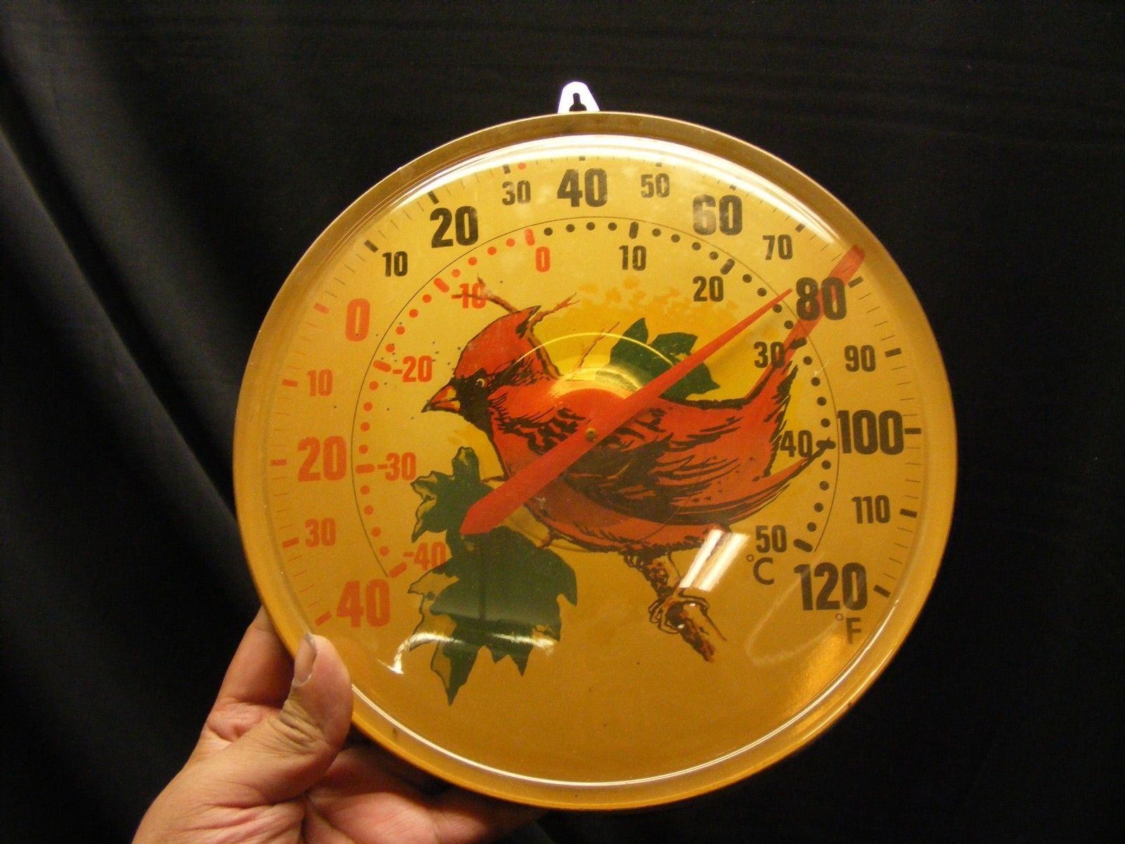 vintage metal cardinal outside thermometer