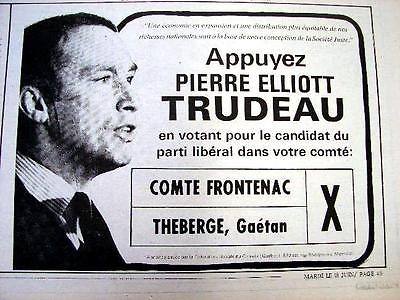 1968 PIERRE ELLIOTT TRUDEAU LIBERAL ELECTION AD F9 9X7