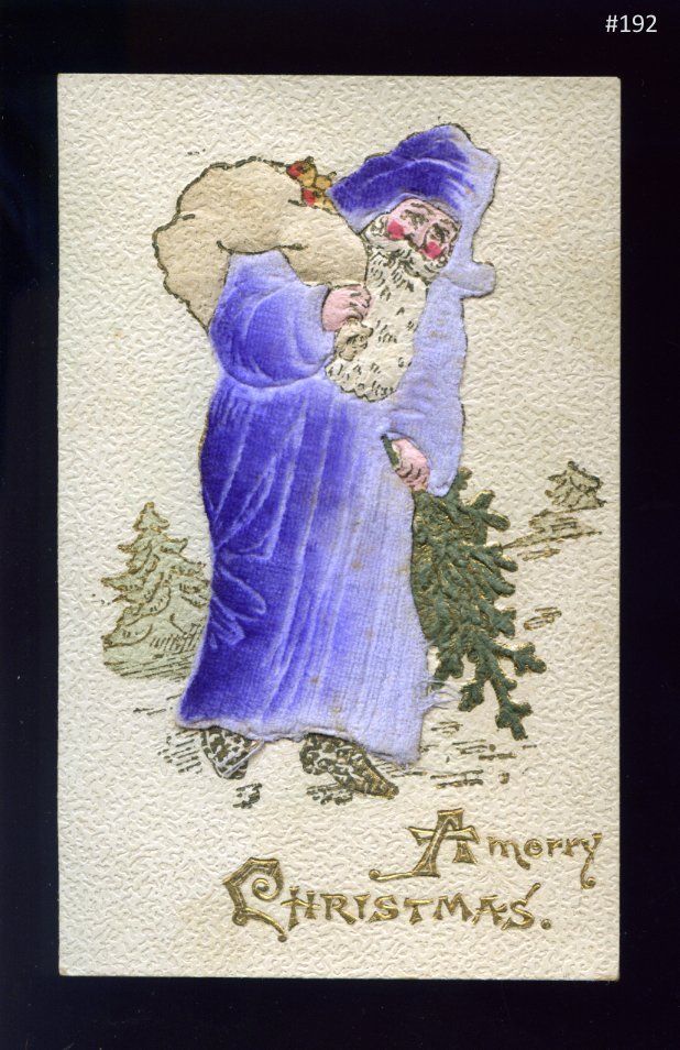 Title (ebay affiliate link): Belsnickle Type Santa, Applied Purple Velvet Robe, Embossed Early Postcard #192