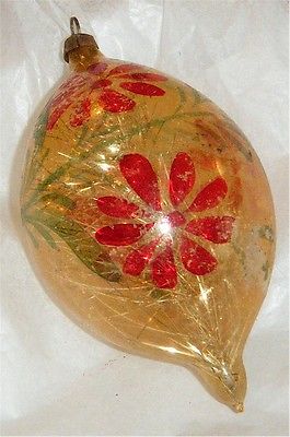 Title (ebay affiliate link): ANTIQUE GLASS CHRISTMAS ORNAMENT, HAND-PAINTED, GOLD TINSEL INSIDE, GERMAN 1920s