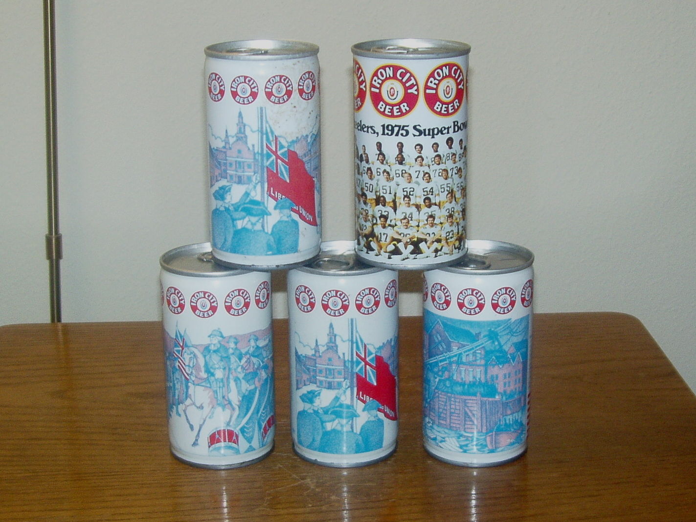 IRON CITY STEEL BEER CANS LOT OF 5 STEELERS - LIBERTY & UNION - WASHINGTON ETC