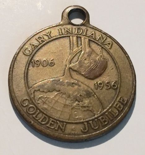 Title (ebay affiliate link): VTG GARY INDIANA GOLDEN JUBILEE 1956 U.S. STEEL WORKS USS KEYCHAIN MEDAL PENDANT