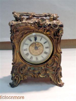 ANTIQUE ANSONIA ORMOLU REPOUSSE BRASS CARRIAGE CLOCK