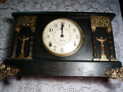 Old Antique Sessions Black Mantel Clock Shelf Clock