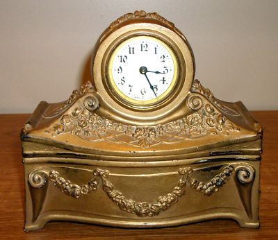 ANTIQUE VICTORIAN MANTLE CASKET CLOCK & JEWELRY BOX