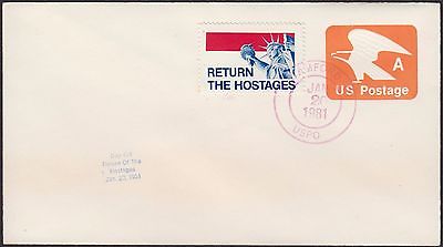 1981 HOSTAGE RELEASE / REAGAN INAUGURATION; JAN 20 POSTMARKED COVER WITH LABEL