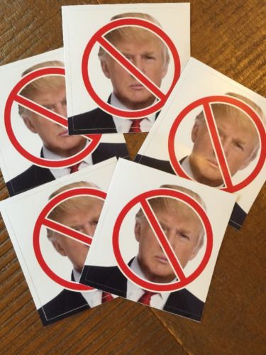 Title (ebay affiliate link): Anti-Trump Bumper Sticker 3" X 3" Package of Five