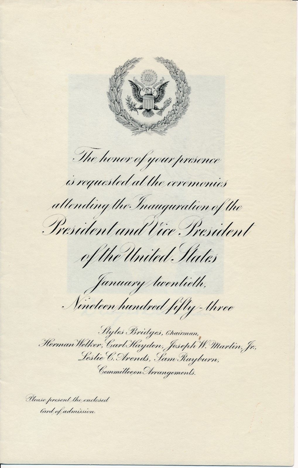 Invitation to President Dwight Eisenhower's first Presidential Inauguration 1953