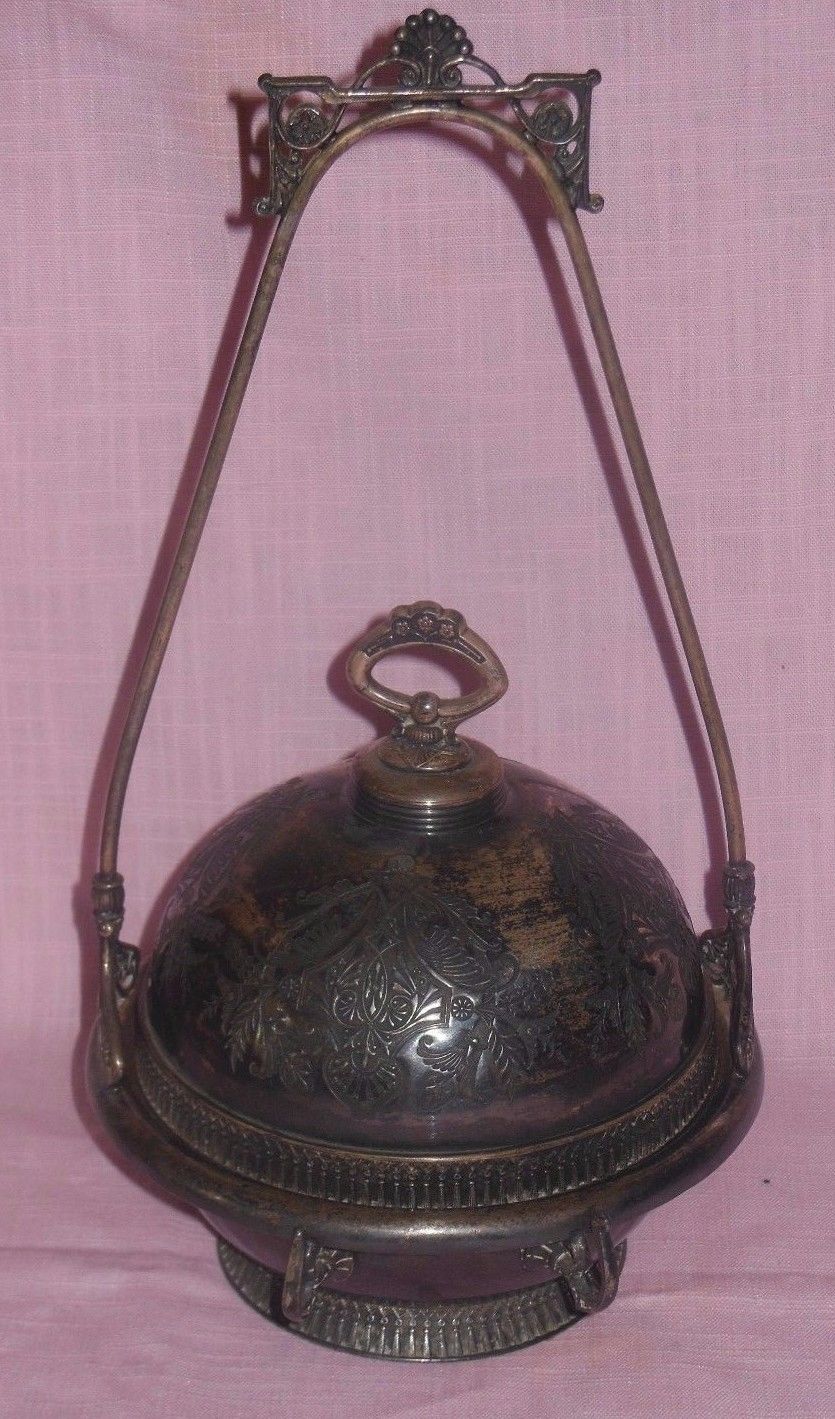 ANTIQUE VICTORIAN DERBY SILVER CO QUADRUPLE SILVER PLATE ROUND COVERED SERVER