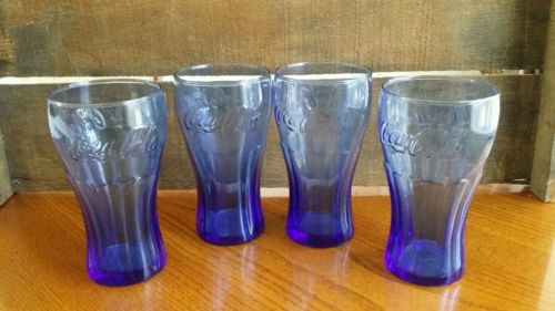 Set of 4 Cobalt Blue Coca Cola Glasses