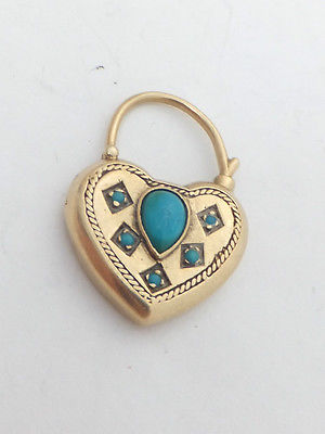 9ct/ 9k gold Turquoise Victorian style love heart locket padlock clasp, 375
