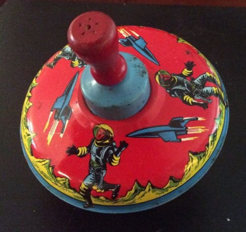 Title (ebay affiliate link): VINTAGE OHIO ART TIN TOY SPINNING TOP SPACEMAN ROCKET SHIP
