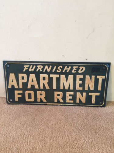 Title (ebay affiliate link): Original 1930's "Furnished Apartment For Rent" Embossed Metal Sign- Dallas, TX