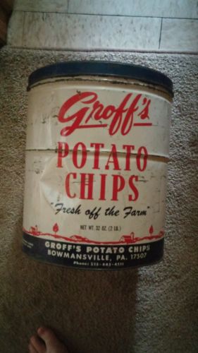 Title (ebay affiliate link): Vintage Groff's potato chip can metal tin Bowmansville PA snack food
