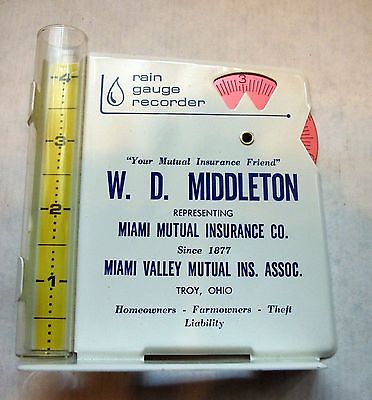 Morco Advertising Rain Gauge W D Middleton Miami Mutual Insurance Troy Ohio