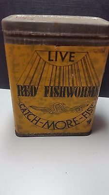 Vintage collectible antique Live Red fishworms tin box - Catch more fish