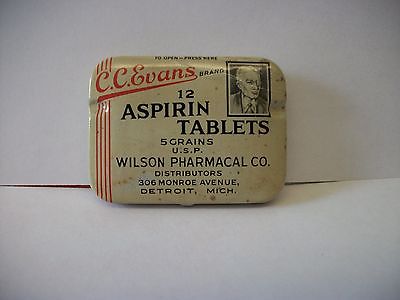 Title (ebay affiliate link): C. C. EVANS ASPRIN TABLETS TIN DETROIT, MICHIGAN ADVERTISING