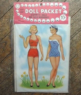 Title (ebay affiliate link): VINTAGE 1960S LOWE CUT-OUT DOLL PACKET STATUETTE DOLLS AND THEIR WARDROBES
