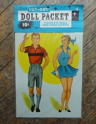 Title (ebay affiliate link): VINTAGE 1960S LOWE CUT-OUT DOLL PACKET STATUETTE DOLLS AND THEIR CLOTHES