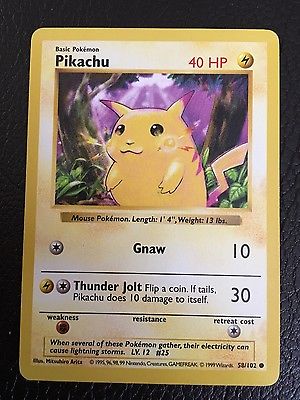 Title (ebay affiliate link): LOT OF 5 Pokemon Pikachu Base Set Original Card 58/102 (M-NM) RARE