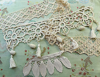 ANTIQUE COTTON LACE TRIM LOT ASSORTED TYPES CROCHET DOTTED TULLE DOLLS CRAFT