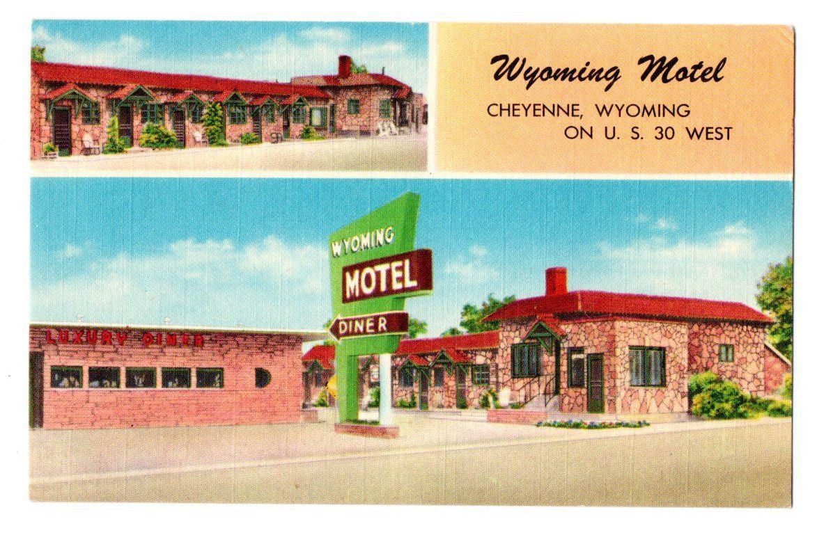 Title (ebay affiliate link): Wyoming Motel, U.S. 30 (Lincoln Highway) West, Cheyenne, WY Linen Postcard