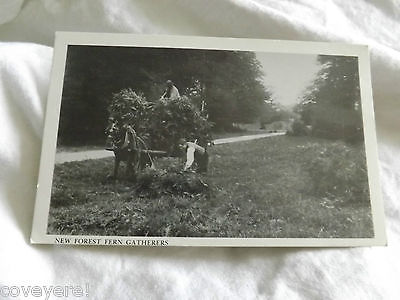 POLLARDS PEOPLE & PONIES PHOTO POSTCARD NEW FOREST FERN GATHERERS + HORSE & CART