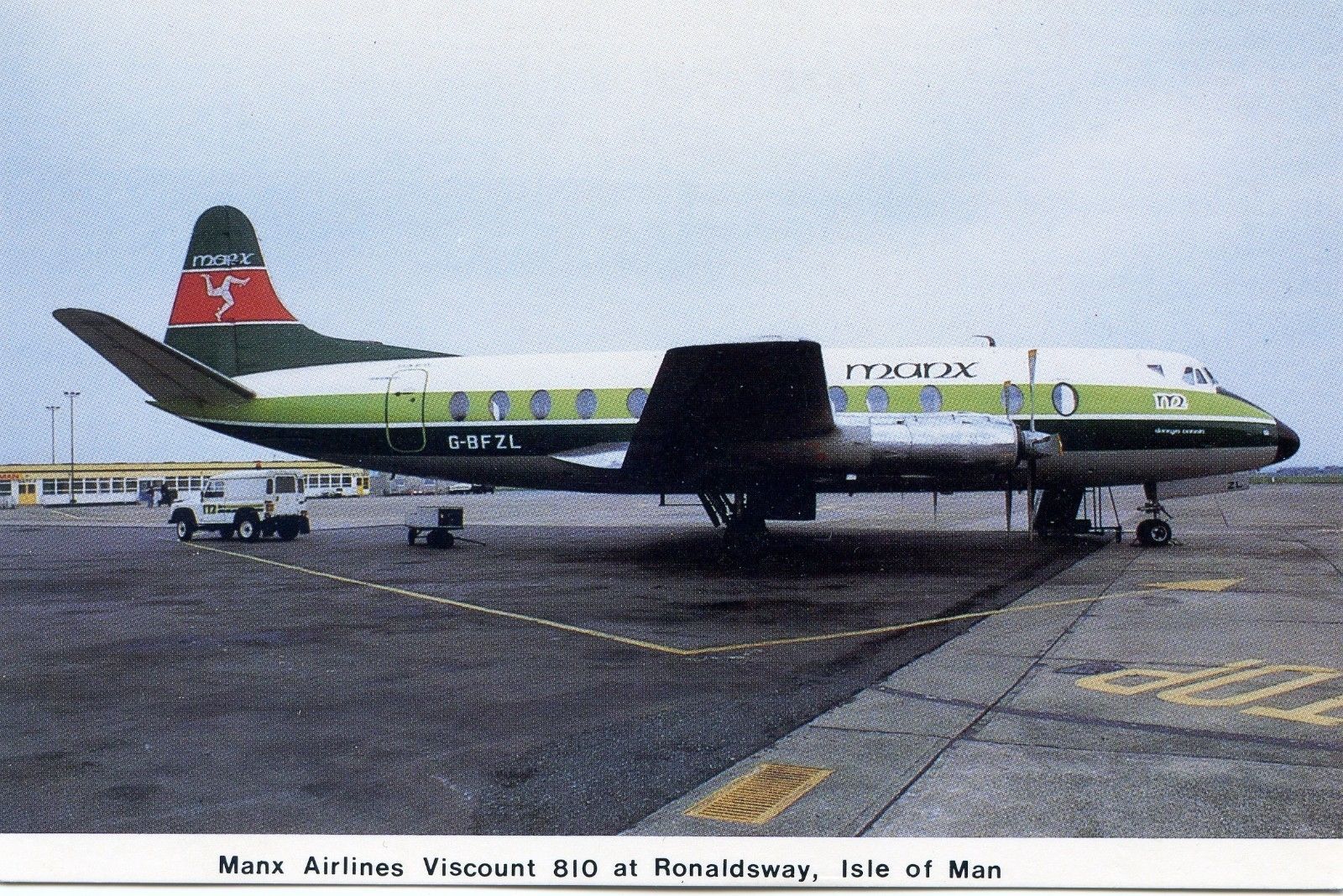 ISLE OF MAN RONALDSWAY AIRPORT - MANX AIRLINES VICKERS VISCOUNT - POSTCARD VIEW