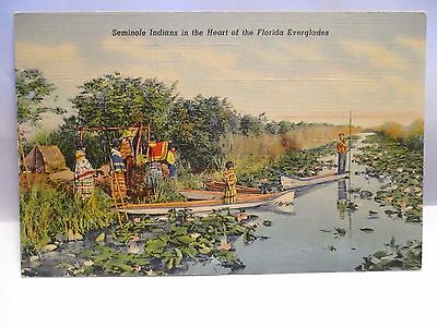 1940 POSTCARD " SEMINOLE INDIANS IN THE HEART OF THE EVERGLADES, FLORIDA " UNUSE
