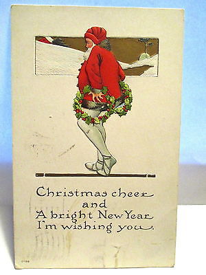 1906 CHRISTMAS POSTCARD SANTA CLAUS IN RED COAT AND WHITE STOCKINGS