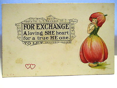 1910 POSTCARD FOR EXCHANGE A LOVING SHE HEART, TULIP GIRL