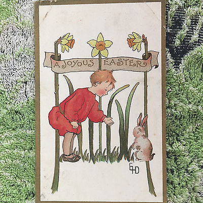 Title (ebay affiliate link): ANTIQUE EASTER POSTCARD; BOY & BUNNY; MAILED 1912 IN SAN FRANCISCO