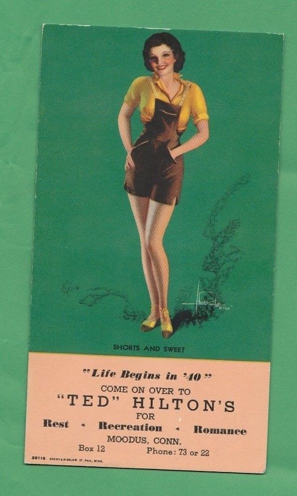 Title (ebay affiliate link): 1940s Ink Pin Up Blotter Shorts & Sweet Ted Hilton's Rest Recreation Moodus Ct