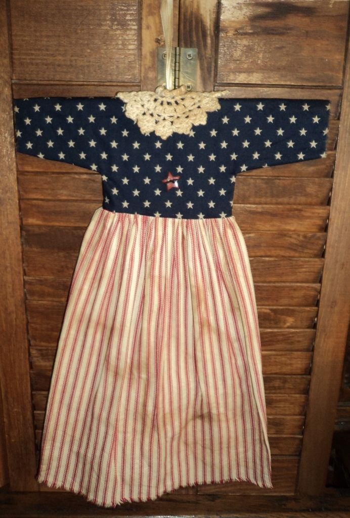 Title (ebay affiliate link): GRUNGY~PRIMITIVE WALL~CUPBOARD~DOLL DRESS AMERICANA RED TICKING FOLK ART DECOR