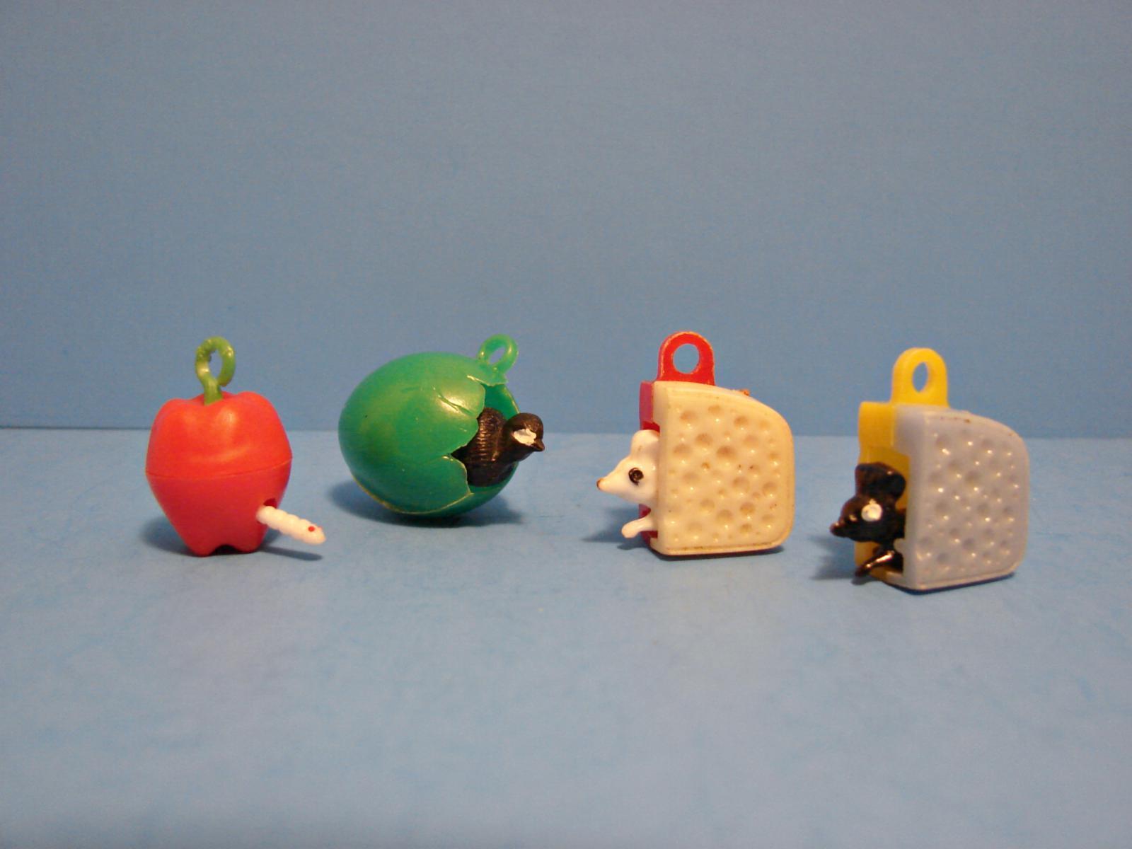 Vintage lot gumball machine prizes toys charms Mouse Cheese Apple Worm moving
