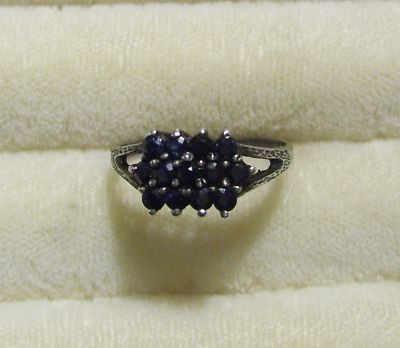 Antique Art Deco Sterling Sapphire Ring (Size 8)