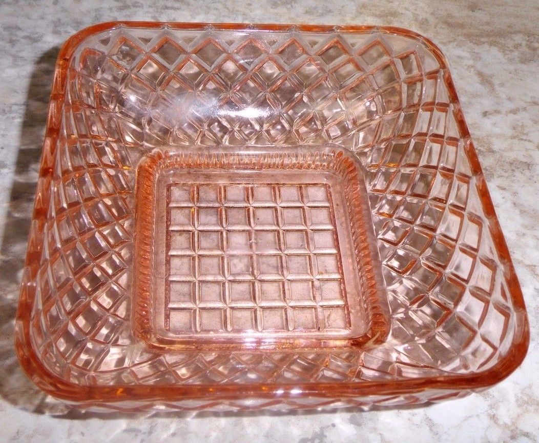 5,5Inch square pink depression glass dish