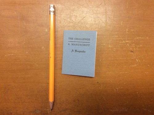 Title (ebay affiliate link): Miniature Book The Challenge : A Manuscript Keepsake Norman Forgue 1983