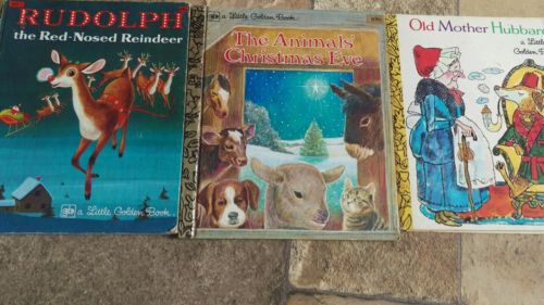 Title (ebay affiliate link): 3 x Little Golden Books Rudolph, Animals Chistmas Eve, Old Mother Hubbard