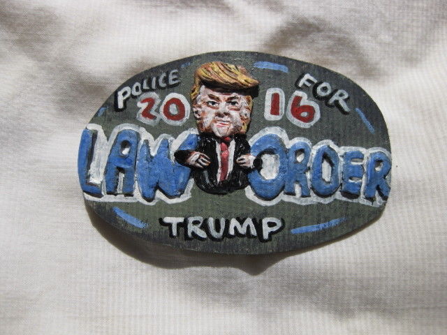 Title (ebay affiliate link): Donald Trump " Law & Order" 2016 Presidential Campaign Novelty pin