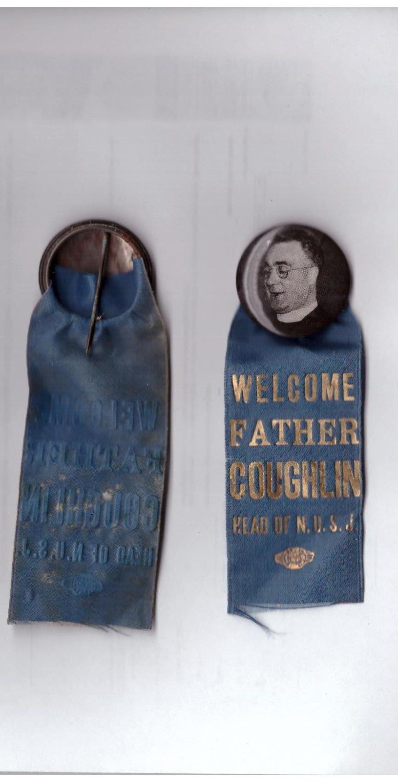 Title (ebay affiliate link): Father Coughlin Button Ribbon Union for Social Justice 1936 1 1/4" CELLULOID