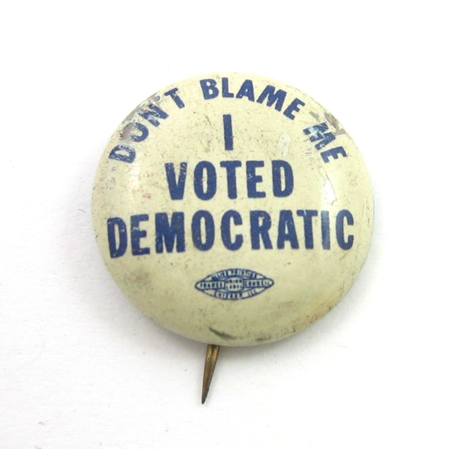 Title (ebay affiliate link): Vintage DON'T BLAME ME I VOTED DEMOCRATIC LAPEL PIN Political Campaign Button