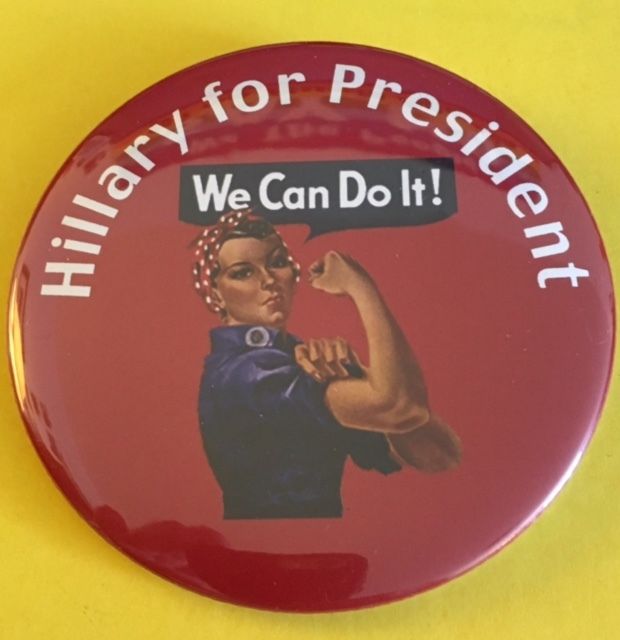 Title (ebay affiliate link): Rosie "HIllary for President - We Can Do It" Pin Button