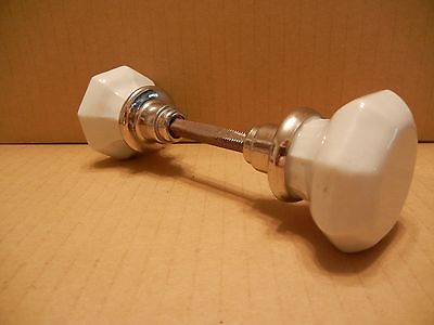 LOT OF 2 ANTIQUE VINTAGE OCTAGONAL MILK GLASS DOOR KNOBS
