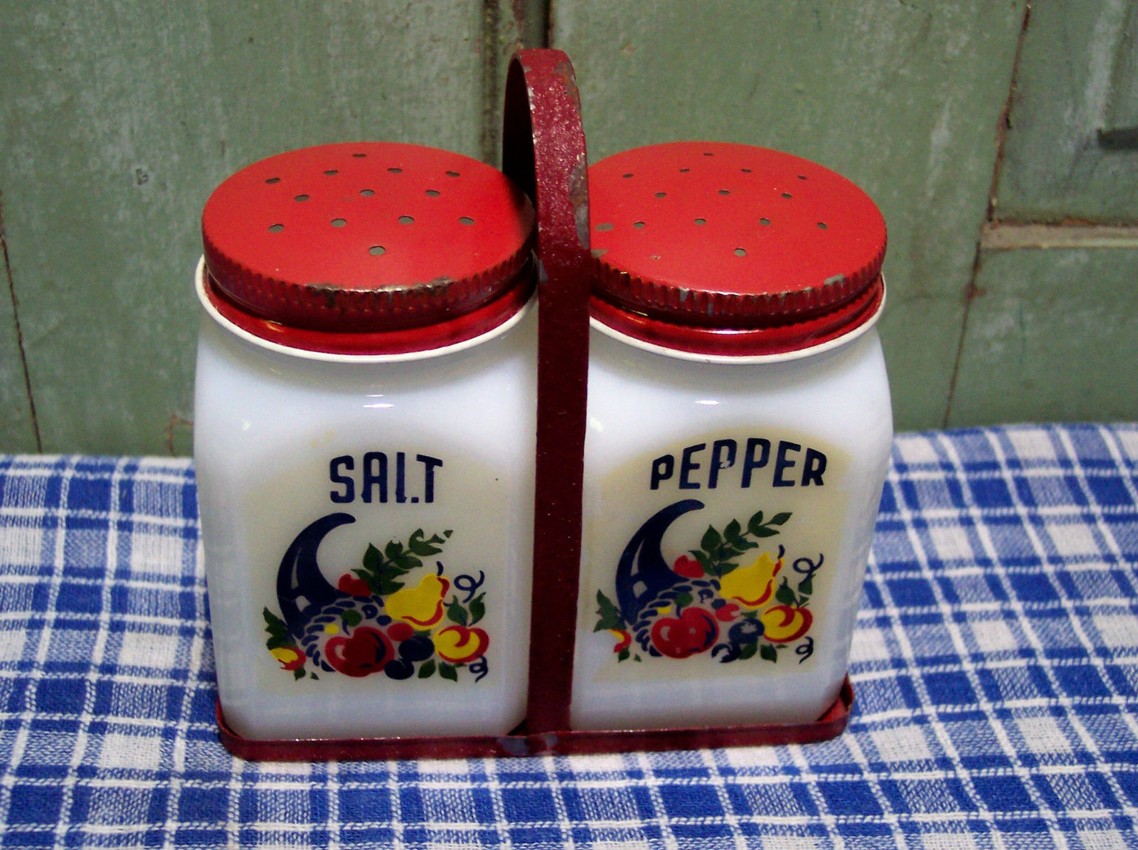 Title (ebay affiliate link): vintage milkglass cornicopia range set salt and pepper shakers rack AS IS