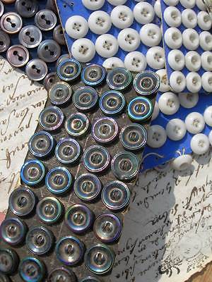 Huge hoard antique French 19thC buttons - milk glass iridescent black glass mop