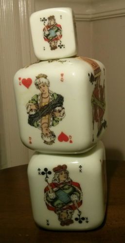 Title (ebay affiliate link): VINTAGE PLAYING CARD DICE MILK GLASS LIQUOR BOTTLE DECANTER & LID BOLOGNA ITALY
